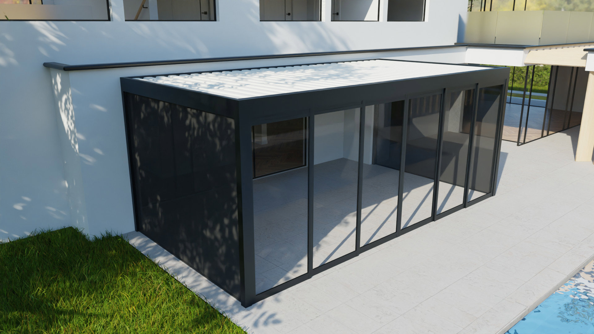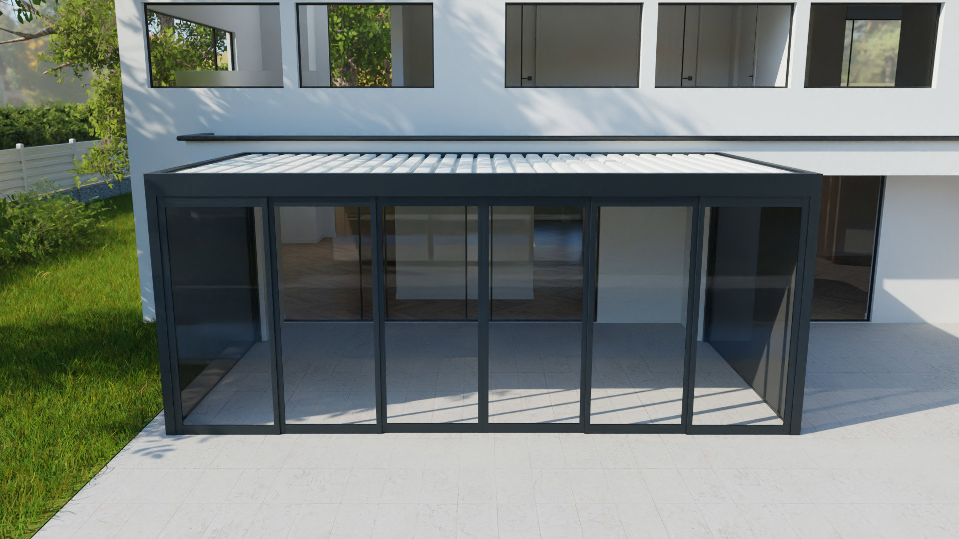 Le système se distingue par la commande extrêmement facile et les exigences minimales en ce qui concerne l'entretien. On peut réaliser l'avancée/l'ouverture vers un côté ou de manière centrale comme un rideau. L'installation facile des parois coulissantes qui complète la construction modulaire de la pergola bioclimatique ARTOSI ou du Carport ARTOSI représente un grand avantage.