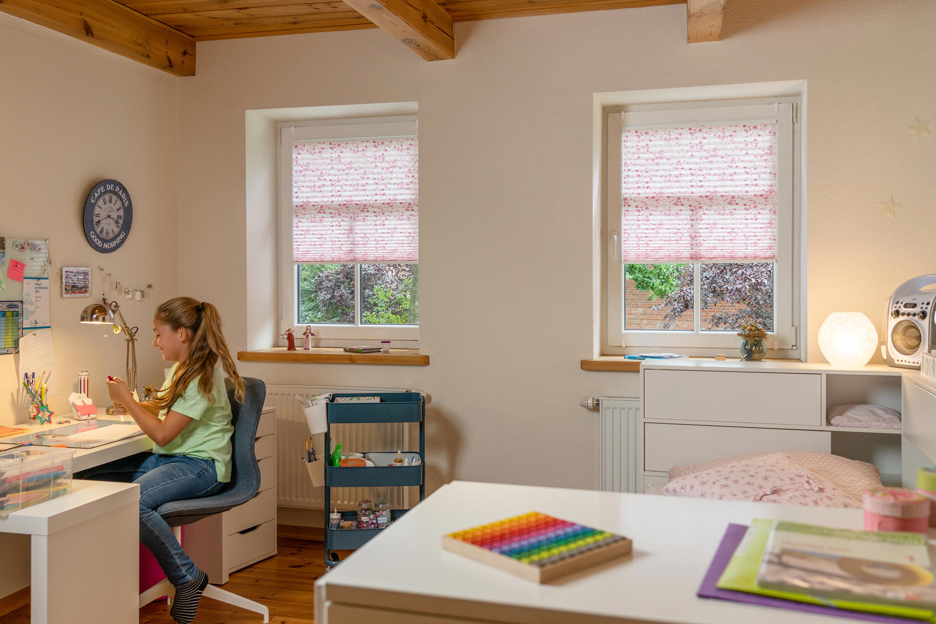 C'est précisément grâce à cette variabilité que les volets roulants conviennent à la plupart des pièces. Ils s'harmonisent facilement avec l'intérieur et ne dérangent pas, même dans un environnement minimaliste. Les volets roulants intérieurs pour fenêtres en plastique, qui se montent directement sur le cadre et restent bien en place même lors de l'aération, constituent également une solution pratique.