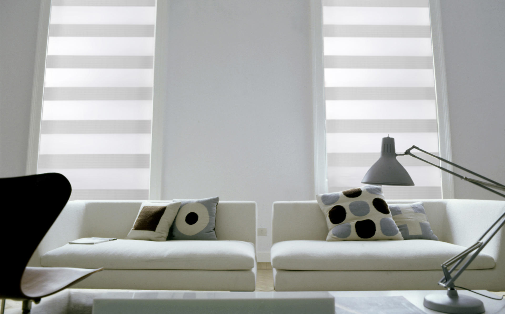 Grâce à leur apparence simple, les stores enrouleurs jour et nuit s'intègrent facilement dans les intérieurs minimalistes comme dans les pièces confortablement aménagées. La gamme de tissus comprend différentes couleurs, textures et largeurs de rayures, ce qui permet d'harmoniser le store enrouleur au mobilier, à la couleur des murs ou, au contraire, de l'utiliser comme élément décoratif plus marqué.